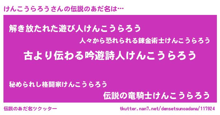 | 意味不明あだ名 | 『住所不定無職けんこうらろう(1歳)』 |