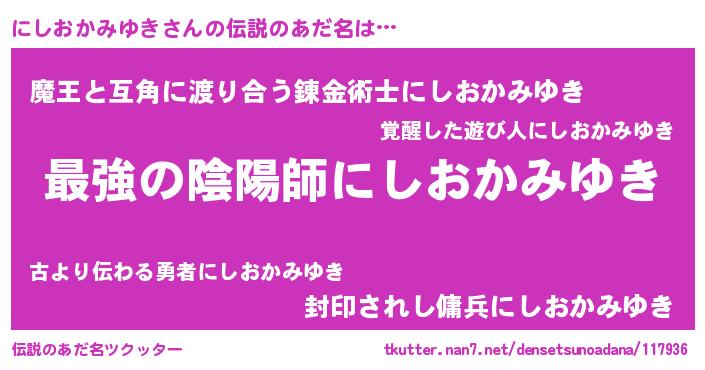 | ファンタジー風あだ名 | 『エターナルニシオカミユキー』 |