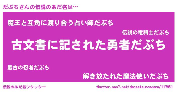 | 意味不明あだ名 | 『永久保存だぶち』『ペロリンだぶち』 |