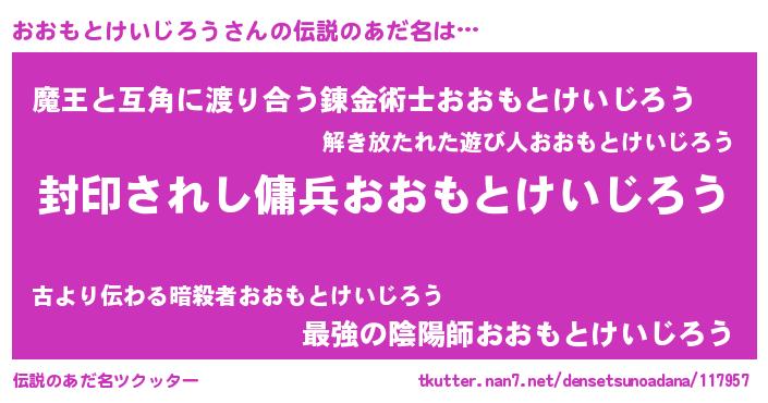| ヒーロー風カッコイイあだ名 | 『スーパーオオモトケイジロウ』 |