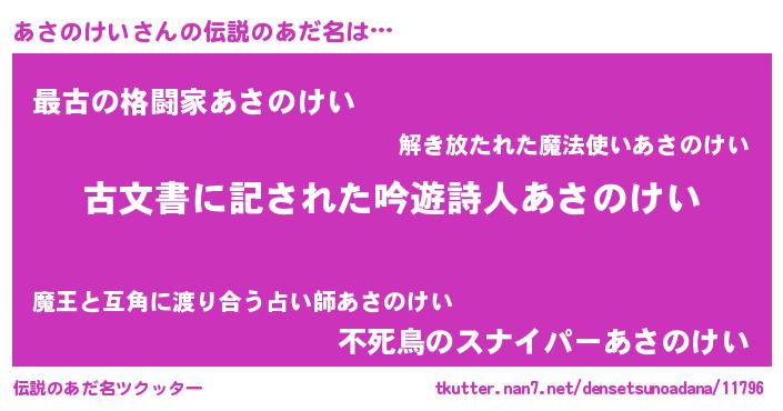 | 意味不明あだ名 | 『永久保存あさのけい』 |