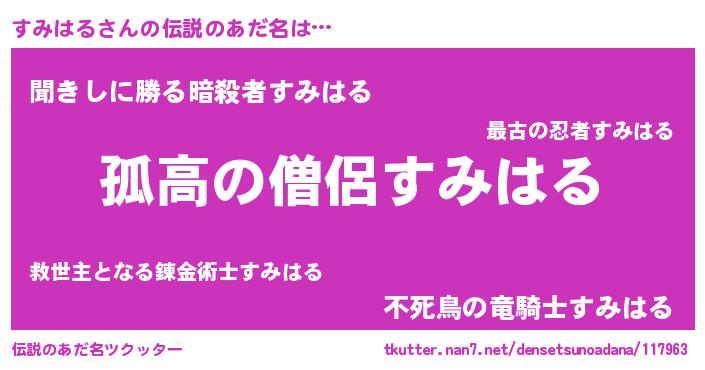 | ヒーロー風カッコイイあだ名 | 『黄金騎士スミ』『ネオスミハル』 |