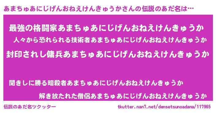 | 胡散臭い通販商品みたいなあだ名 | 『億万長者になれる水晶球…その名も「あまちゅあにじげんおねえけんきゅうか」』 |