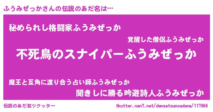 | 意味不明あだ名 | 『自称ふうみぜっか』 |