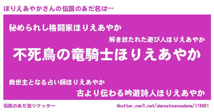| ヒーロー風カッコイイあだ名 | 『スーパーホリエアヤカ』『黄金騎士ホリ』 |