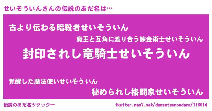 | 意味不明あだ名 | 『自称せいそういん』 |