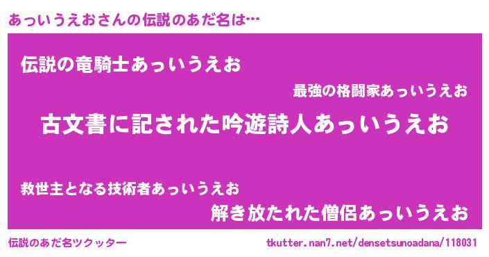| 意味不明あだ名 | 『住所不定無職あっいうえお(9歳)』 |