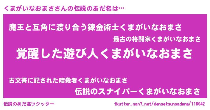 | ヒーロー風カッコイイあだ名 | 『究極戦士クマガイナオマサ』 |