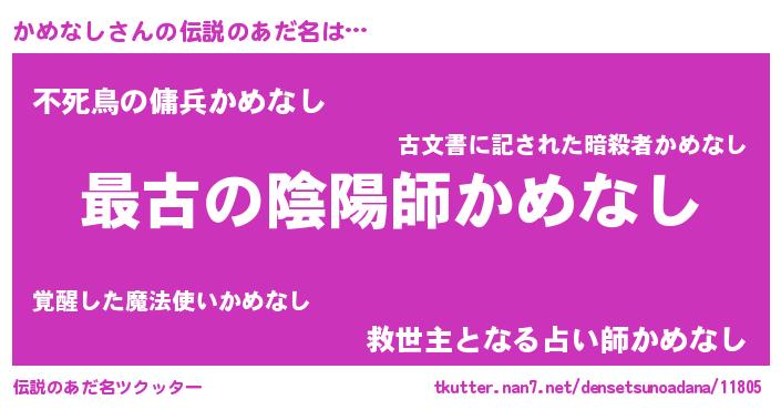 | 意味不明あだ名 | 『自称かめなし』『かめなしフォーエバー』 |