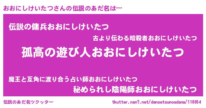 | 意味不明あだ名 | 『自称おおにしけいたつ』 |
