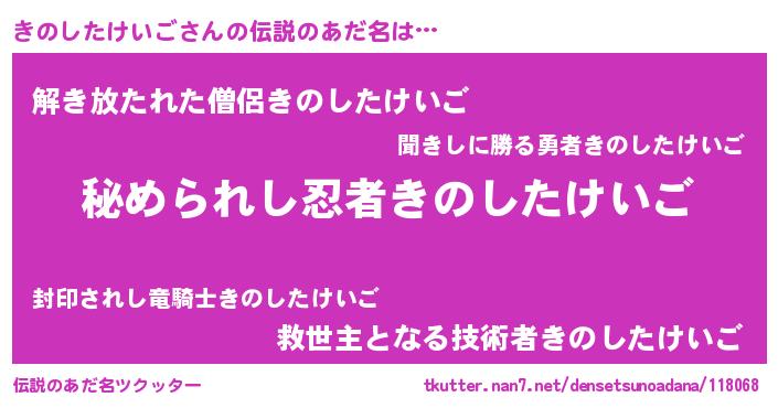 | 男性向けラノベタイトル風あだ名 | 『キノシタケイゴスレイヤー』 |