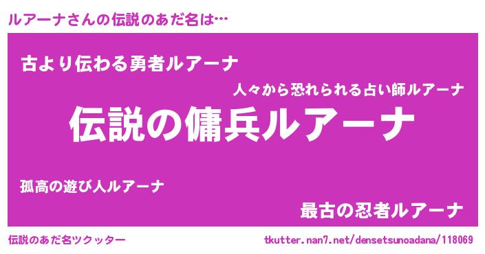 | 意味不明あだ名 | 『住所不定無職ルアーナ(41歳)』 |