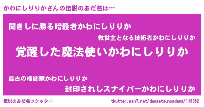 | 意味不明あだ名 | 『住所不定無職かわにしりりか(12歳)』 |