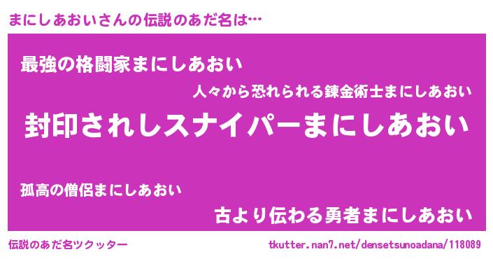| 男性向けラノベタイトル風あだ名 | 『マニシアオイアートオンライン』 |