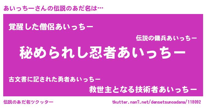 | 意味不明あだ名 | 『あいっちーフォーエバー』 |