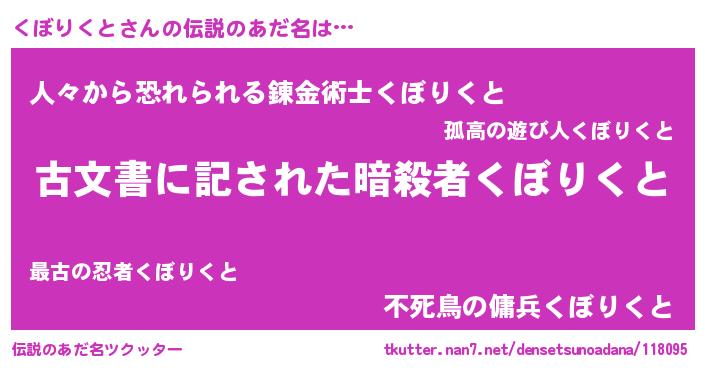 | 意味不明あだ名 | 『自称くぼりくと』『永久保存くぼりくと』 |