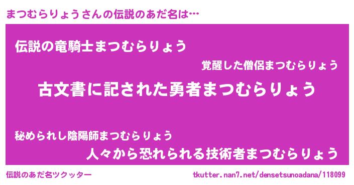| 意味不明あだ名 | 『自称まつむらりょう』 |