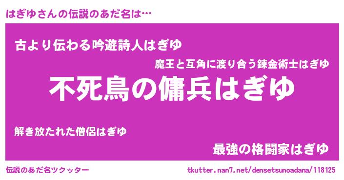 | 2回繰り返すあだ名 | 『はぎはぎ』『ぎんぎん』『ははぎぎ』 |