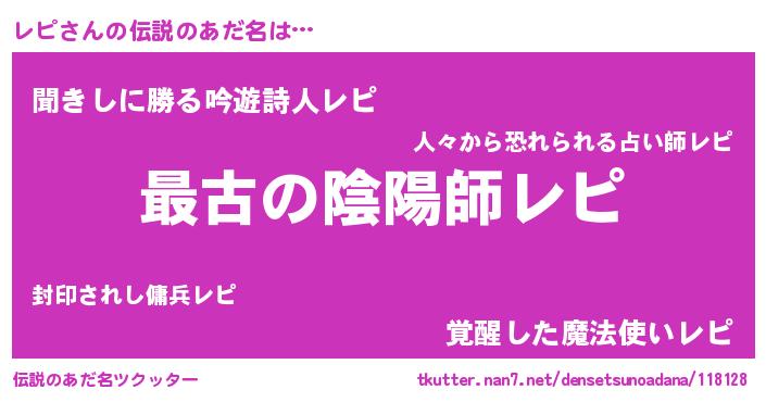 | ヒーロー風カッコイイあだ名 | 『ウルトラレピマン』『超時空戦士レピ』 |