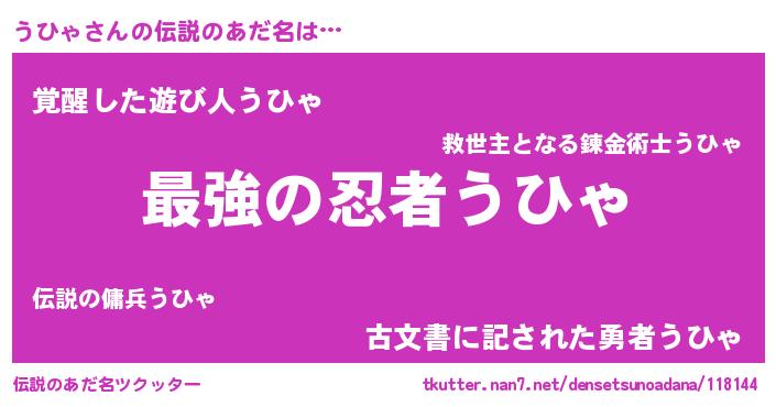 | ヒーロー風カッコイイあだ名 | 『ウルトラうひゃマン』『究極戦士ウヒャ』 |