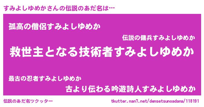 | ヘコむあだ名 | 『すみ太郎』『すみよしゆめか(笑)』 |