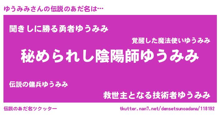 | ポケモン風あだ名 | 『ユウセウス』『ユウミダネ』 |