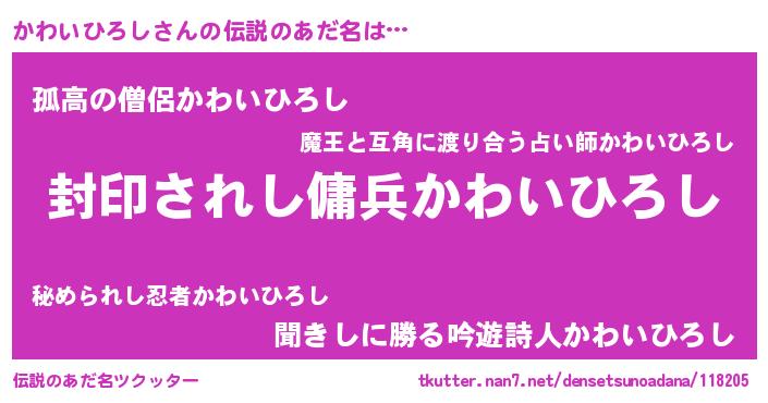 | ヒーロー風カッコイイあだ名 | 『スーパーカワイヒロシ』『暗黒騎士カワ』 |
