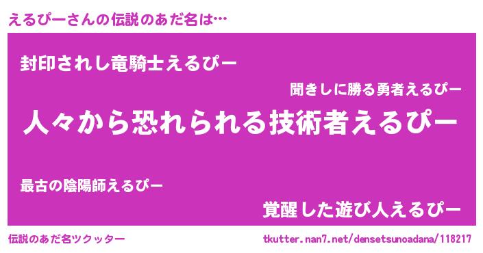 | ヒーロー風カッコイイあだ名 | 『正義の使者えるぴー』『天弓騎士エル』 |