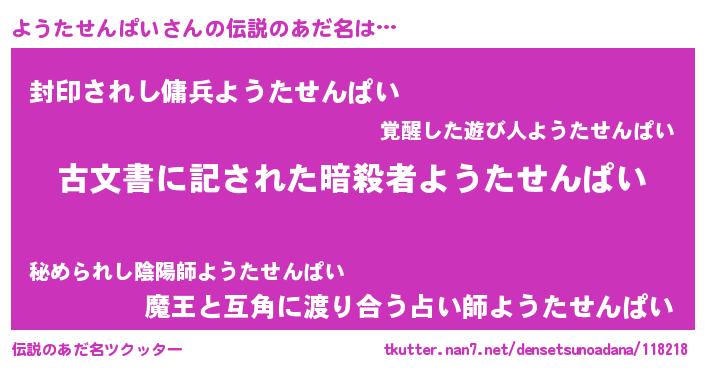 | 意味不明あだ名 | 『永久保存ようたせんぱい』 |