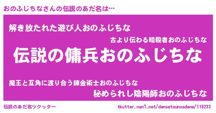 | 男性向けラノベタイトル風あだ名 | 『おのふじちなの憂鬱』 |