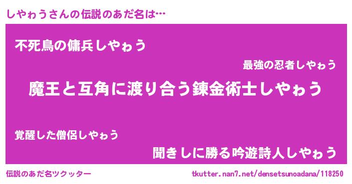 | ヒーロー風カッコイイあだ名 | 『友情の使者しやゎう』『ネオシヤヮウ』 |