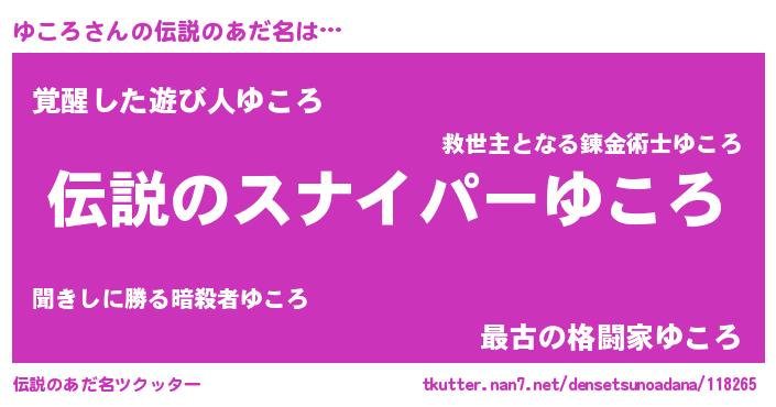 | ファンタジー風あだ名 | 『ユコフェル』『ゼユコトゥ』 |
