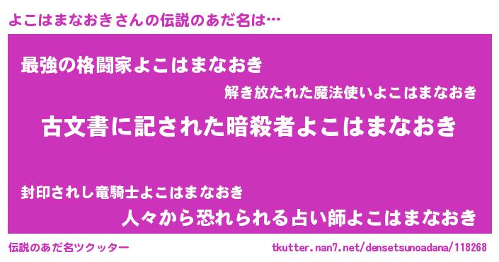 よこはまなおきさんの伝説のあだ名をツクッター!