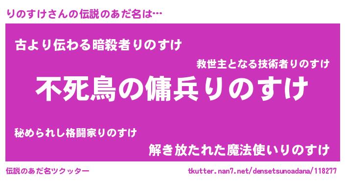 | 胡散臭い通販商品みたいなあだ名 | 『モテモテ間違いなし水晶球…その名も「りのすけ」』 |