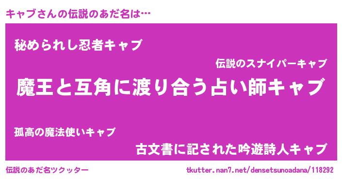 | ヒーロー風カッコイイあだ名 | 『愛の使者キャブ』『仮面キャダー』 |