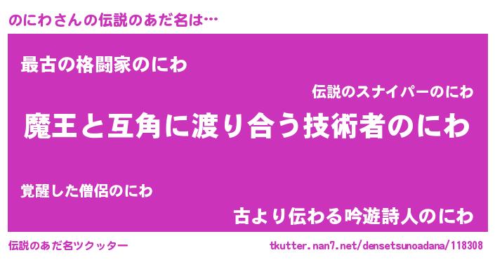 | ヒーロー風カッコイイあだ名 | 『慈愛の使者のにわ』『仮面ノニダー』 |