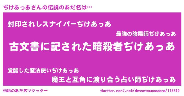 | 意味不明あだ名 | 『永久保存ぢけあっあ』『自称ぢけあっあ』 |