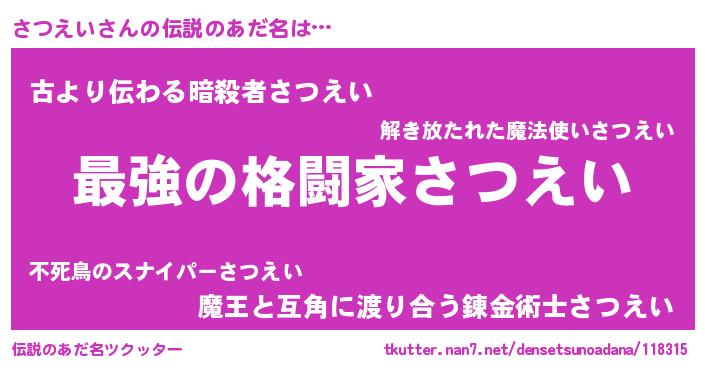 | ファンタジー風あだ名 | 『エターナルサツエイー』『クインサット』 |