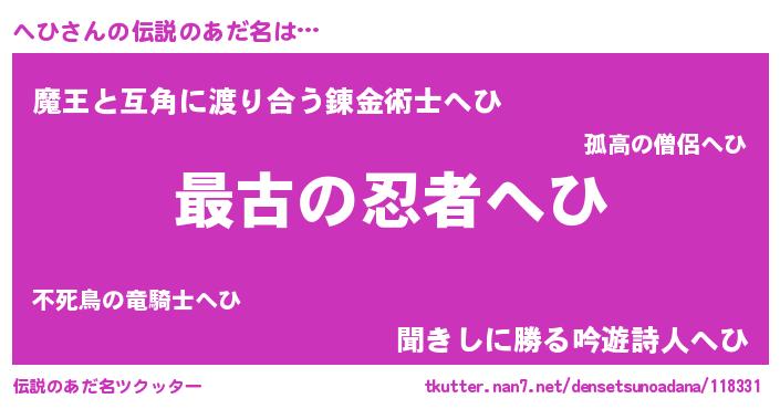 | ヒーロー風カッコイイあだ名 | 『ウルトラへひマン』『慈愛の使者へひ』 |
