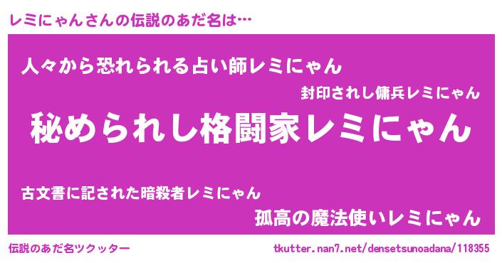 | 男性向けラノベタイトル風あだ名 | 『やはりレミにゃんの青春ラブコメはまちがっている 』 |