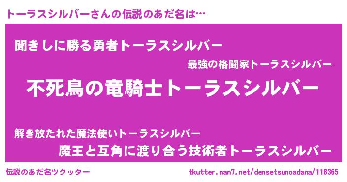 トーラスシルバーさんの伝説のあだ名をツクッター!