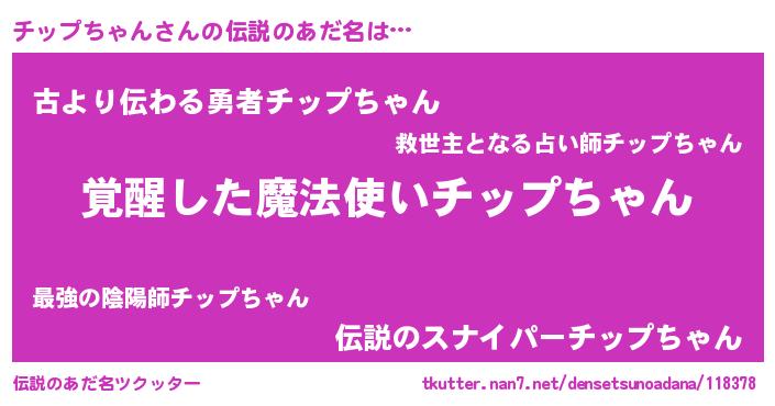| 女子向けラノベタイトル風あだ名 | 『チップちゃん様がみてる』 |