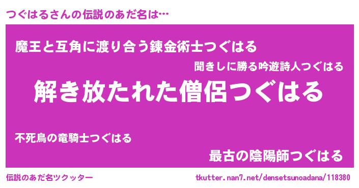 | 女子向けラノベタイトル風あだ名 | 『つぐはるの卵を拾いまして』 |