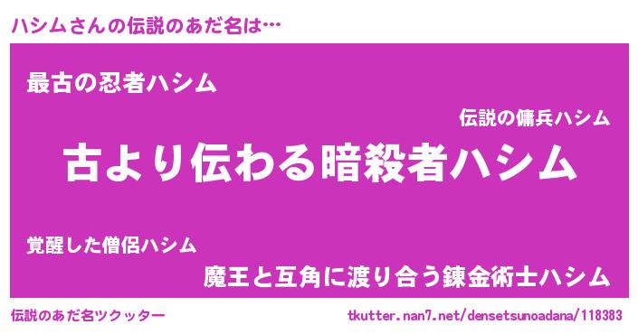| 胡散臭い通販商品みたいなあだ名 | 『来世でも幸せになれる健康食品…その名も「ハシム」』 |