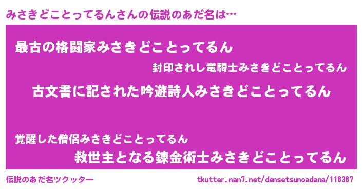 | 意味不明あだ名 | 『永久保存みさきどことってるん』 |
