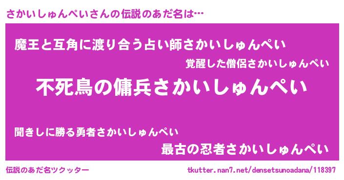 | ヒーロー風カッコイイあだ名 | 『スーパーサカイシュンペイ』 |