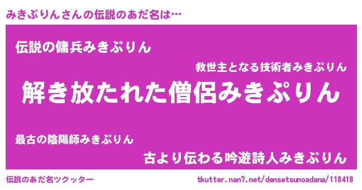 | 意味不明あだ名 | 『自称みきぷりん』『ペロリンみきぷりん』 |