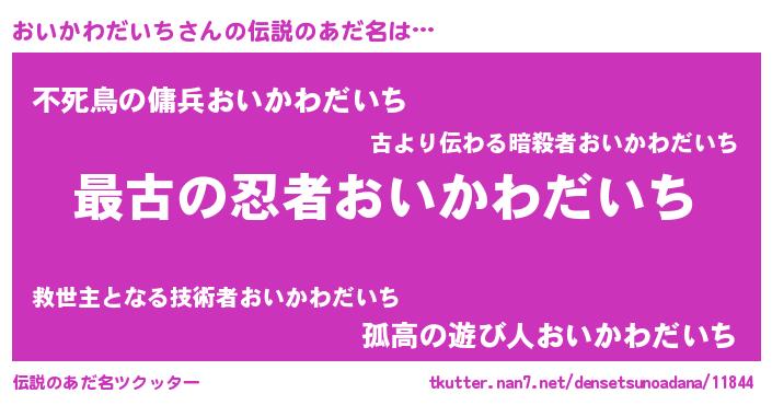 | 男性向けラノベタイトル風あだ名 | 『おいかわだいちに滅ぼされるだけの簡単なお仕事です』 |
