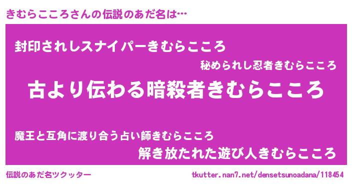 | 意味不明あだ名 | 『住所不定無職きむらこころ(43歳)』 |