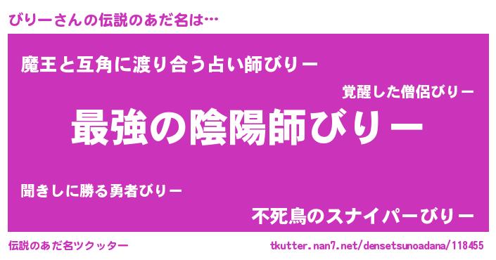 | ファンタジー風あだ名 | 『カークビリラー』『エターナルビリーー』 |